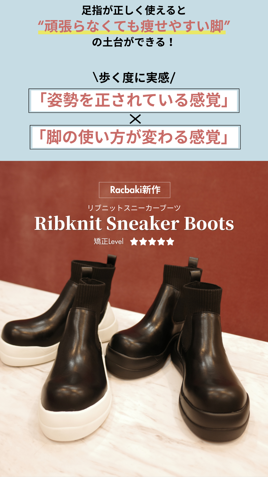 【Racbaki新作】リブニットブーツで強烈なかかと重心へ