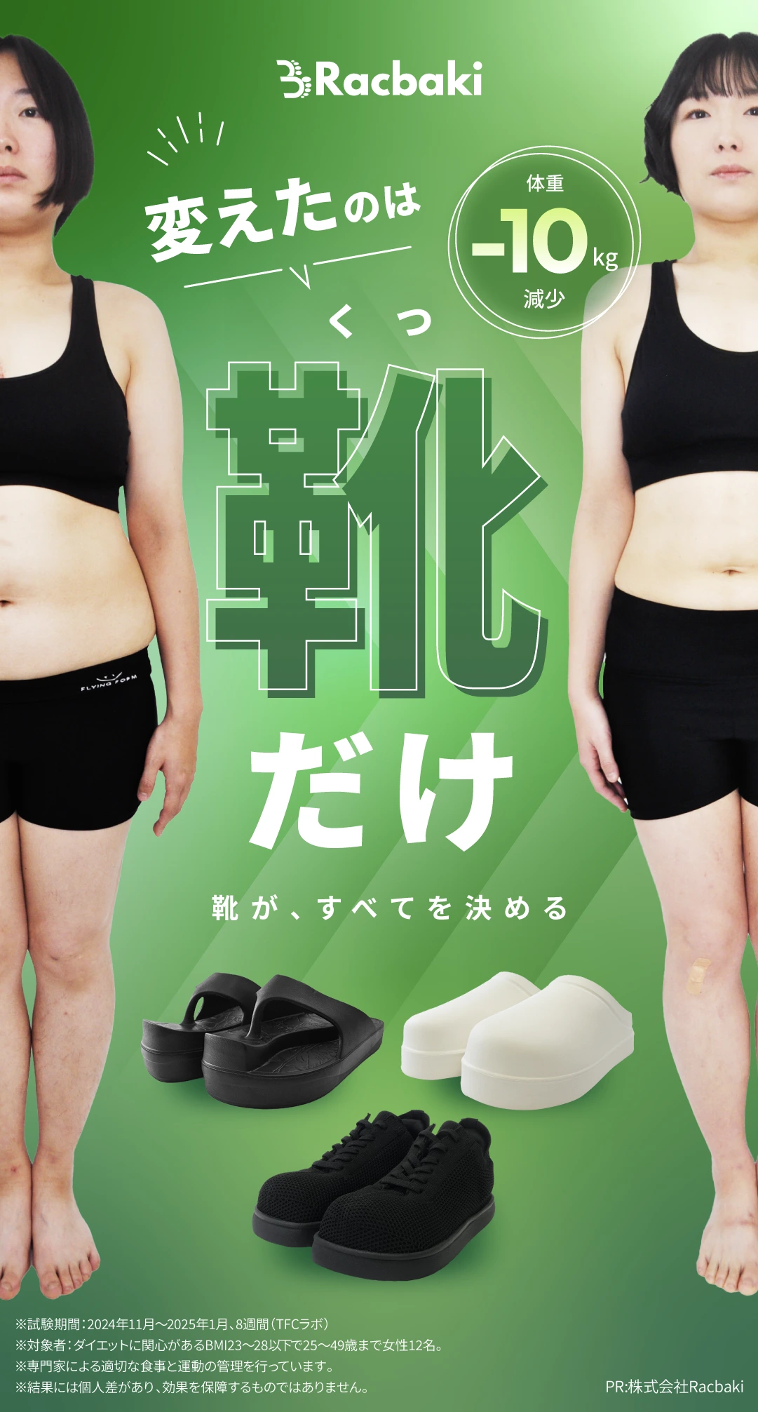 イージーサンダル着用8週間後の姿勢・体重推移